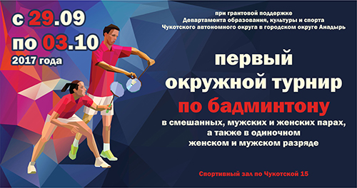 С 29 сентября по 03 октября 2017 года, при грантовой поддержке Департамента образования, культуры и спорта Чукотского автономного округа в городском округе Анадырь пройдет первый окружной турнир по бадминтону в смешанных, мужских и женских парах, а также в одиночном женском и мужском разряде.