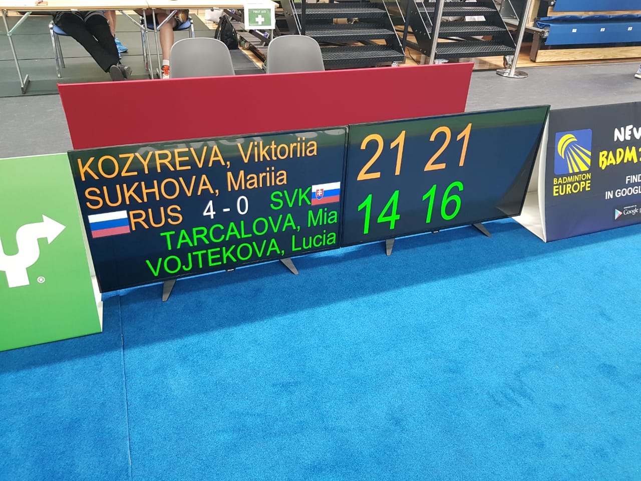 В первый день начались игры группового этапа. Российская команда встретилась с самым сильным соперником по своей группе - сборной Словакии. Тем не менее, встреча окончилась с сухим счетом 5-0 в нашу пользу. Сопротивление словацкая команда смогла оказать лишь в мужской паре и одиночке, где были сыграны по три гейма.