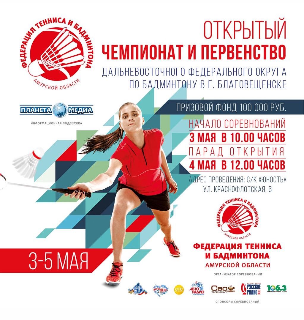 3 мая в г. Благовещенске стартует Открытый чемпионат и первенство Дальневосточного федерального округа. Участие в турнире принимают 88 чел. из Приморского края, Хабаровского края, Забайкальского края, Амурской области, г. Благовещенска. В рамках турнира пройдут соревнования среди детей с ограниченными возможностями здоровья. Соревнования предварял учебно-методический семинар для судей по бадминтону.
