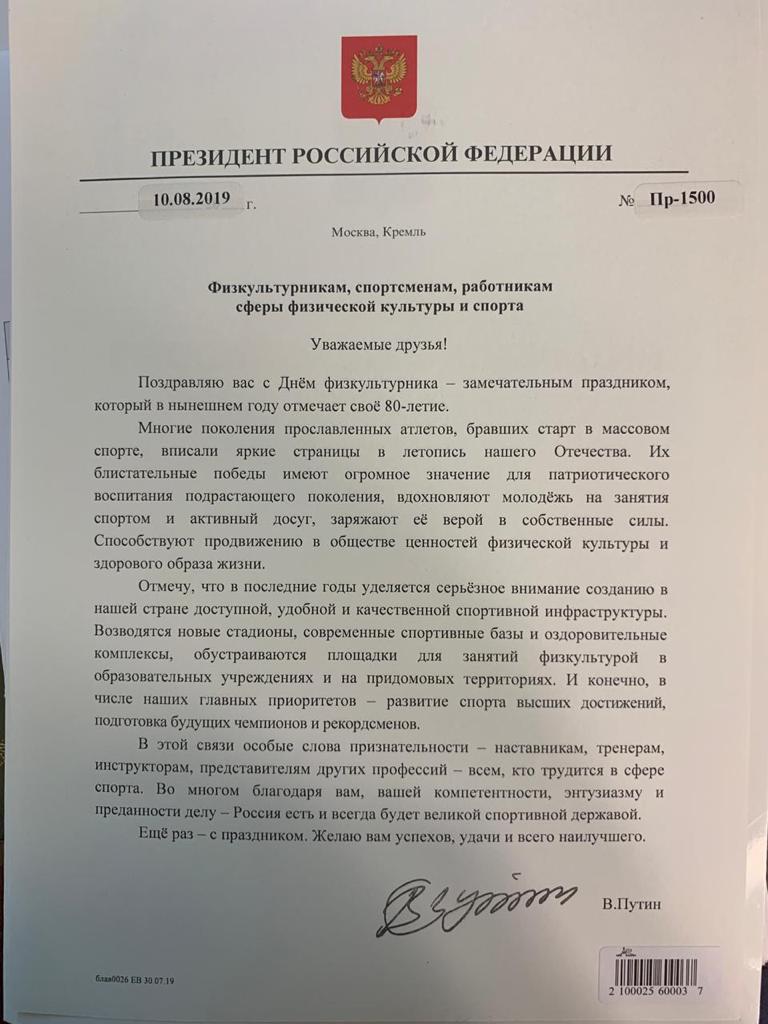 Поздравляю вас с Днём физкультурника — замечательным праздником, который в нынешнем году отмечает своё 80-летие.