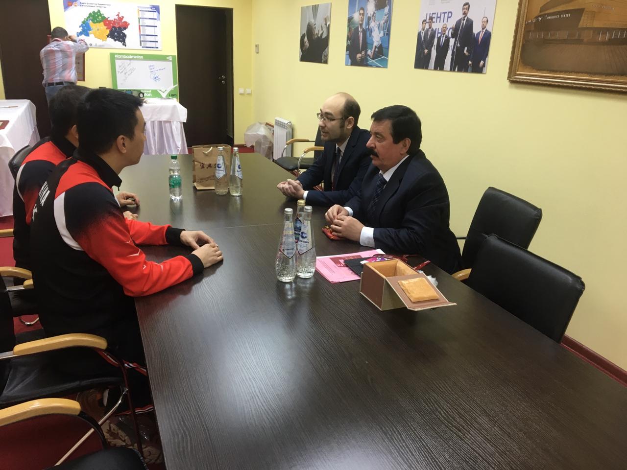 В рамках чемпионата мира по бадминтону среди спортсменов до 19 лет, проходящем в Казани, президент НФБР С.М.Шахрай встретился с генеральным секретарем Китайской ассоциации бадминтона г-ном Ван Вэйем. Стороны обсудили ряд вопросов, представляющих взаимный интерес.