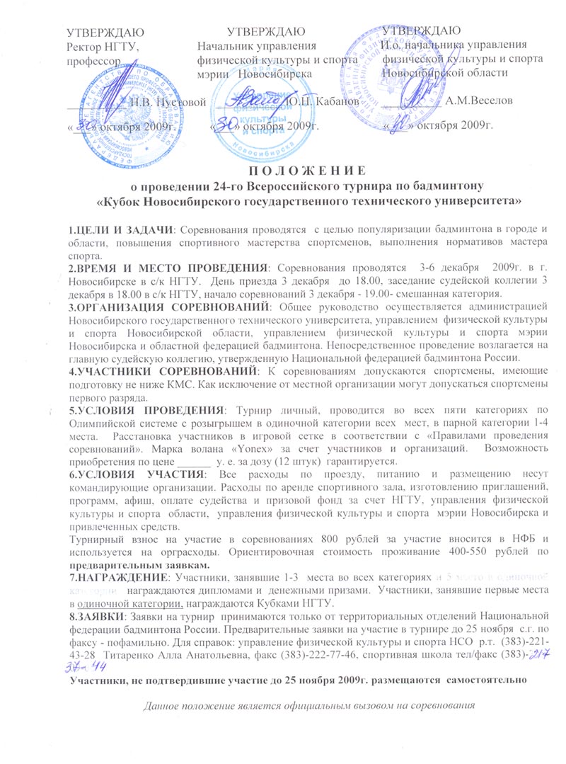 24-й Всероссийский турнир по бадминтону "Кубок Новосибирского государственного технического университета" г. Новосибирск, 3-6 декабря 2009 г.