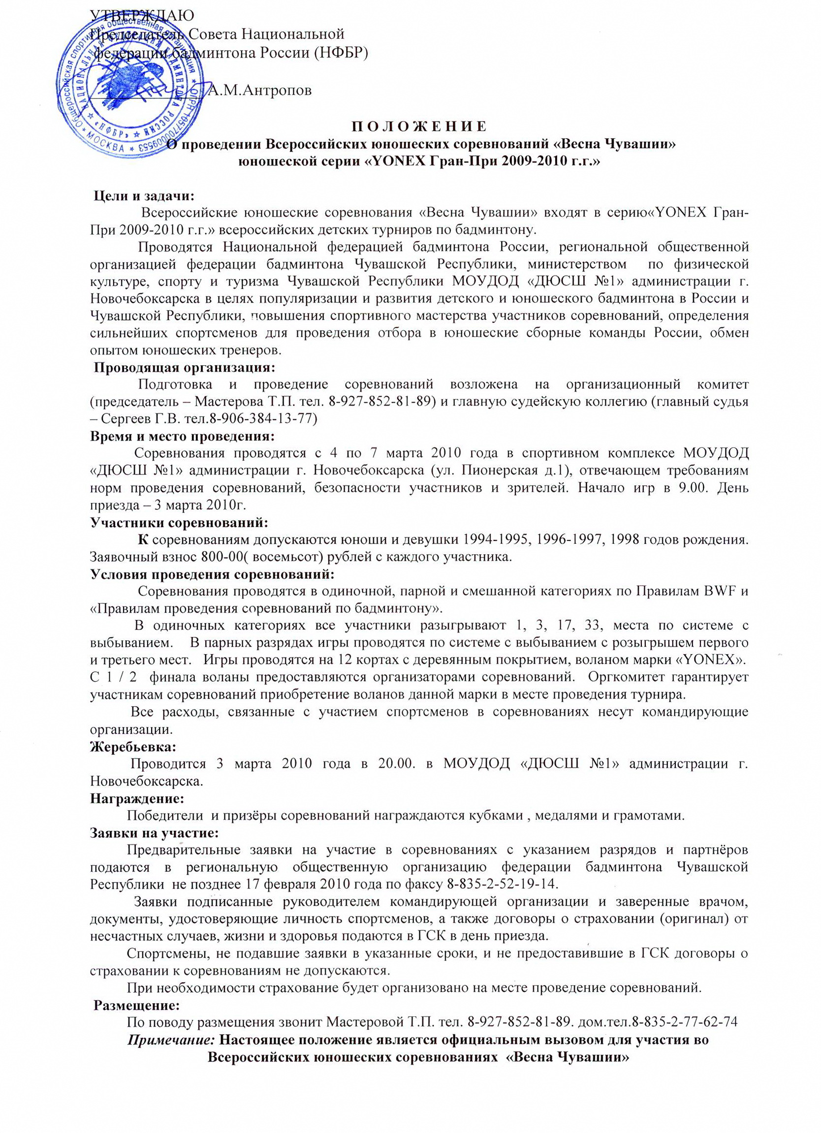 Всероссийские юношеские соревнования "Весна Чувашии" юношеской серии "Yonex Гран-При 2009/2010"