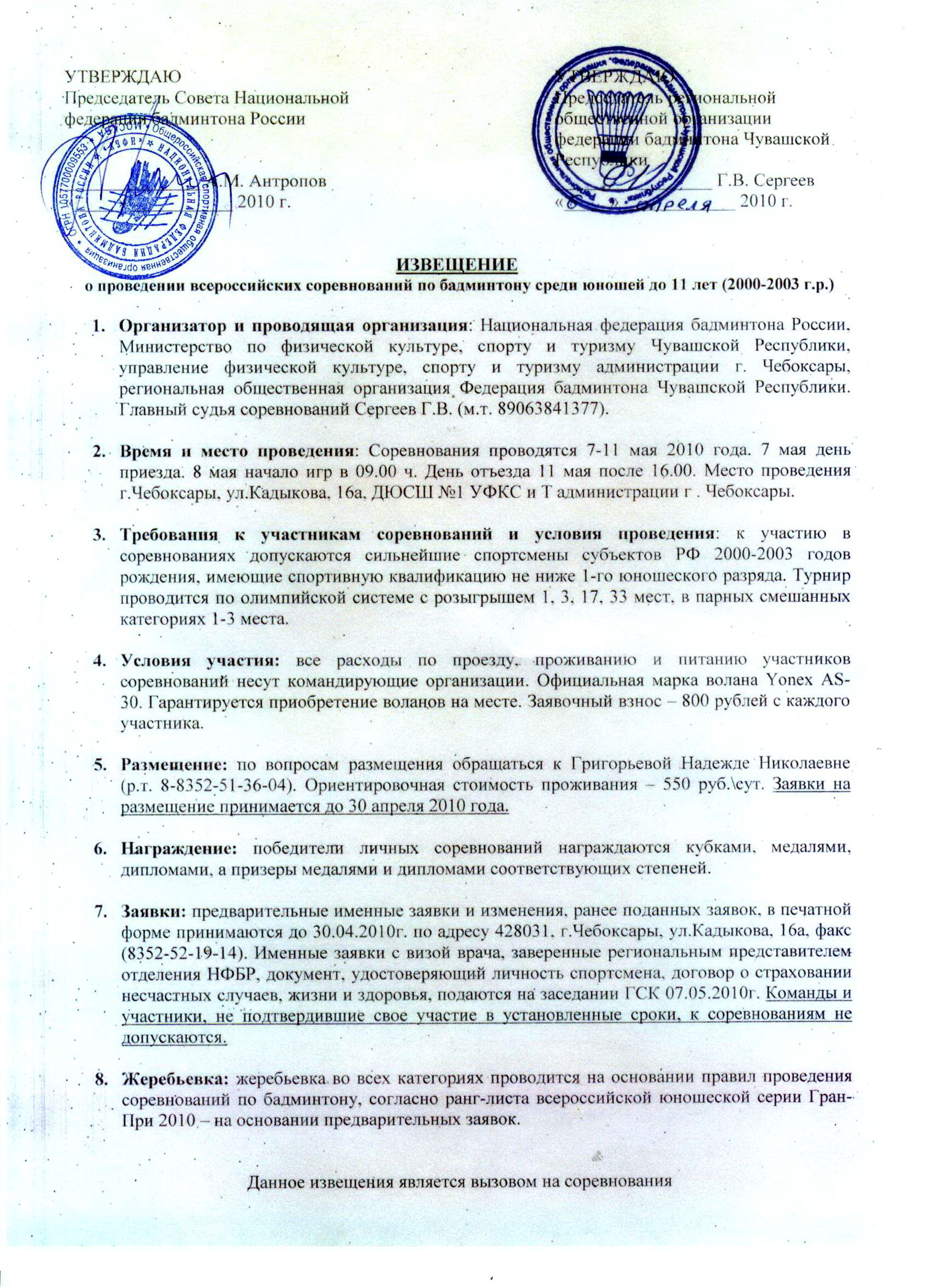 Всероссийские соревнования по бадминтону среди юношей до 11 лет (2000-2003 г.р.)