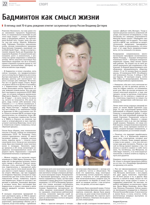 О большом спортивном и творческом пути Владимира Аркадьевича читайте в его интервью, данном газете «Жуковские вести».