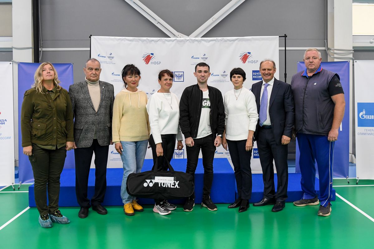 В рамках торжественной церемонии награждения Чемпионата России 2021 в «Центре бадминтона» в г. Саратове состоялось вручение комплектов бадминтонного инвентаря и учебно-методических пособий по бадминтону участникам программы «Проба пера» - школьным бадминтонным клубам и представителям образовательных учреждений. Вручение проводили председатель Совета НФБР А.М. Антропов и заместители председателя НФБР В.А. Пронин и И.В. Зубова.