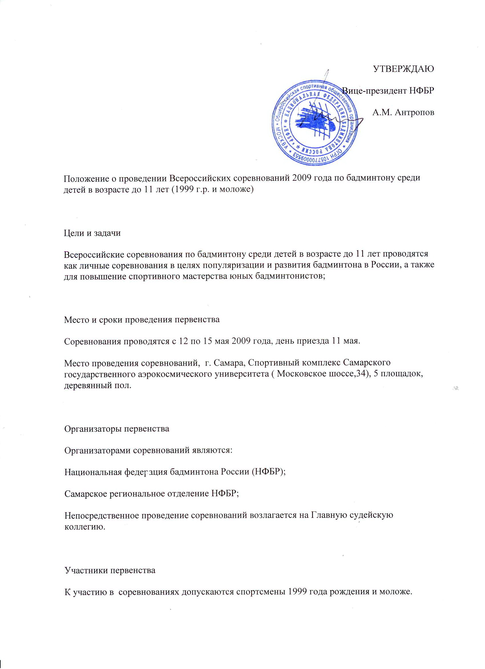 Всероссийские соревнования среди юношей до 11 лет (не старше 1999 г.р.) г.Самара, 12-15 мая 2009 г.