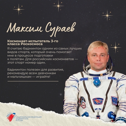 Бадминтон и пилотируемую космонавтику связывает многолетняя дружба, идущая от первого отряда и до наших дней.